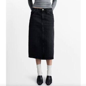 Effortlessly chic, this five-pocket denim midi-skirt from Mango brings a timeless appeal. Made from faded black denim (100% cotton). Gently used- no rips or stains. Size S