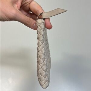 Used Naghedi cream light tan woven zippered cosmetic case pouch