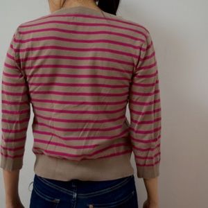 Used striped pink and brown crew-neck sweater. Perfect for the fall season!
