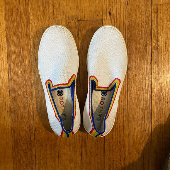 Used Rothy Rainbow slip ons.