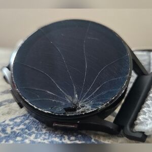 Used Samsung Galaxy Watch 4. Cracked screen but watch works fine otherwise. Comes with 3 extra watch bands.