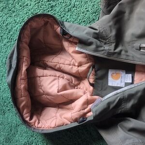 There are two main obvious places of wear: the Carhartt logo on the sleeve is peeling off and the chest pocket zipper is starting to detach from the body of the jacket. The jacket isn't any colder or less waterproof because of this and the zipper still works. I noticed both issues when I bought it and although the logo keeps peeling, the zipper hasn't gotten any worse over the last year.