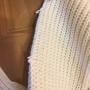 Used white sweater. Few snags on sleeve as well as a few dark spots. Zipper back. Size Medium.