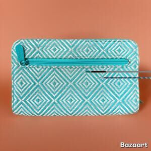 Used Thirty-One 31 brand Perfect Cent Wallet Turquoise Graphic Weave