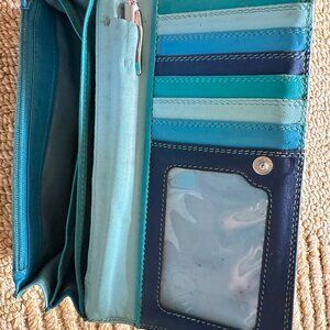 Gorgeous wallet with signs of wear. Even though it is worn, it still has a lot of life to it. The snap and all the zippers work well. The pen in it doesn't work, but you can put in your favorite pen instead. Really loved this wallet but I've switched to a phone wallet. Brand is Mywalit. Feel free to make me an offer.