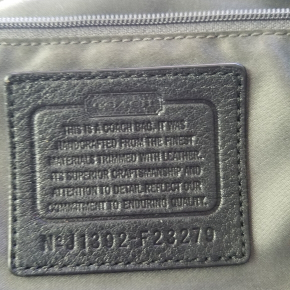 Used coach bag is in good to very good condition with serial number shown so don't ask. All hardware intact and zippers work. No unpleasant odors, major wear or tears. bag has a shoulder strap that can be worn across the body if you choose to do so. No hidden stains either so don't ask that either.