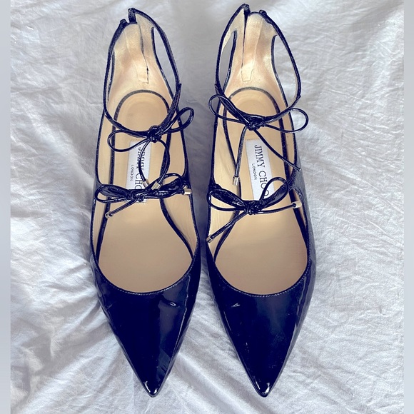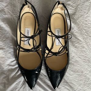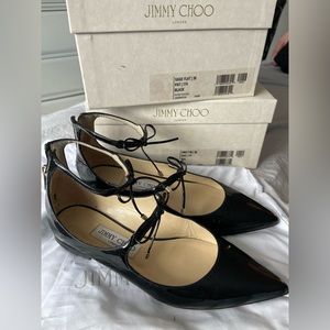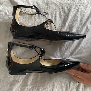Used jimmy chop flats with box and dust bag size 36 sage flat in patent black