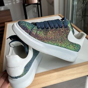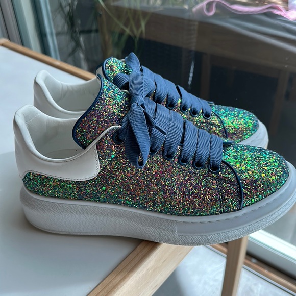 Used once , absolutely show stopper !!!! Alexander McQueen glitter shoes !!! This are amazing , husband bought them half a size to small for me !!!!! I promise the picture doesn’t make them justice .