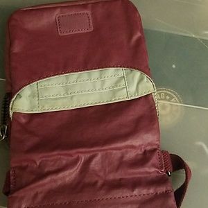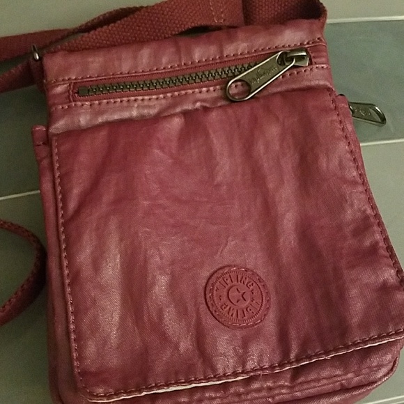 Used plum small Kipling bag, some discoloration in the interior, no monkey attached