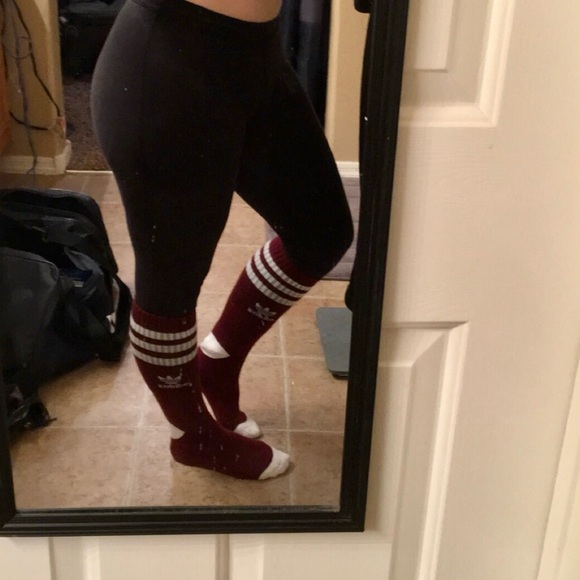 Stylish adidas crew socks in burgundy and white. Ideal for sports and casual wear. Used so not in perfect condition