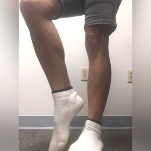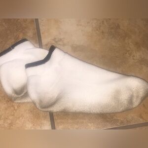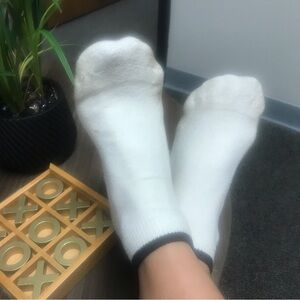 My used white socks. Simple but so comfy. Black stripe around the ankle. I love them, they fit me so good.