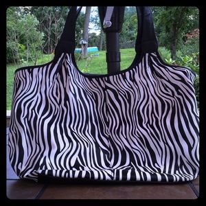 Purchased from Target, this is a nice sized tote bag with an interior zip pocket and 2 slip pockets. Previously loved with some signs of use (please refer to last picture). Overall in good condition and will fit plenty!