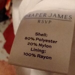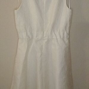 Sleeveless dress. Polyester/nylon mix outer with a Rayon lining. Size Large. A-line with pockets on sides. Zipper closure. No rips, tears or stains. Smoke free/Dog friendly home.