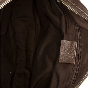 Please check all pics before purchase minor flaws left side overall bag condition very good no odor inside clean strap in great condition Elegant Gucci bag with rich dark brown leather interior. Features a secure zipper closure. Brown Canvas