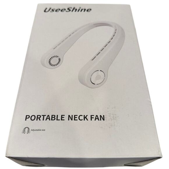 UseeShine portable bladeless neck fan with rechargeable battery, quiet operation, and three adjustable speed settings for hands-free personal cooling at home, travel, or outdoors.