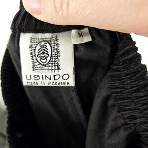 Usindo Corduroy Black Maxi Skirt Elastic Waist Satin Bottom Size Medium