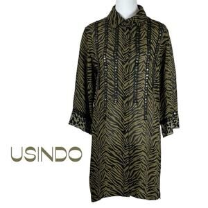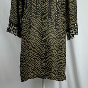 Usindo Sheer Sequined Animal Print Boho Artist Shirt Dress Vintage Size S