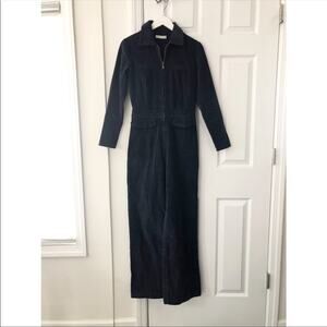 Size small from Usisi Sister. Style name Cissy. Blue cotton corduroy zip front collared jumpsuit. With pockets. Straight Leg. Preowned in good condition with no stains or tears.