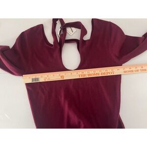 New with Tags. MSRP$440. Elegance redefined awaits with this striking burgundy maxi dress, where modern design meets timeless sophistication. The unique cut-out detailing at the front and back introduces an element of intrigue, framing the neckline and upper back with a subtle, sensual touch. Its floor-length silhouette and long sleeves create a sleek, streamlined effect, perfect for making a statement without sacrificing comfort. Merino wool and viscose blend.
