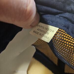 Colors: Navy/blue brim and mesh with cream/white front; green and yellow accents