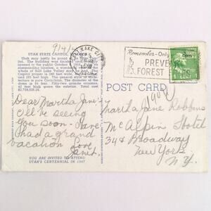 Utah State Capitol Building Salt Lake City UT 1940s Linen Postcard 1949