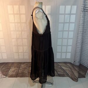 Utcoco Brown Embroidered Square Neck Tiered Maxi Jumper Apron Dress Medium