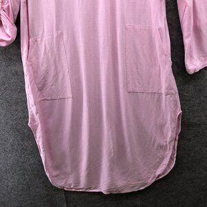 Utcoco Cotton Linen Shirt Dress Womens S Pink Roll Tab Sleeve Midi Collared