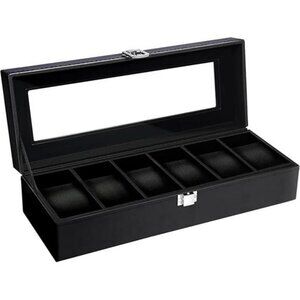 Uten Watch Box Glass Display Organizer 6 Slot PU Leather Case for Men Women