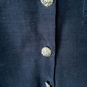 Uterque Black Ribbed Long Dolman Sleeves Oversized Golden Button Lion Shirt S