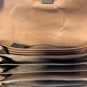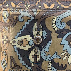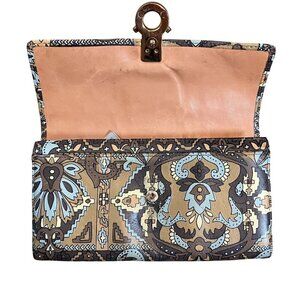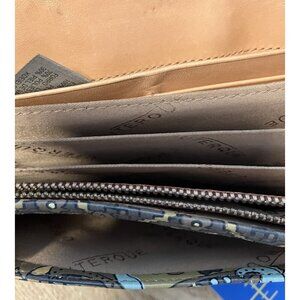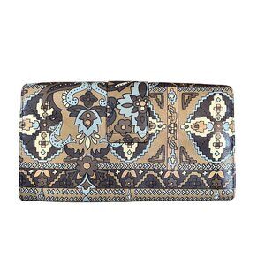 Uterque Brown, Tan, Blue Sheepskin Multipocket Geometric Floral Clutch Wallet