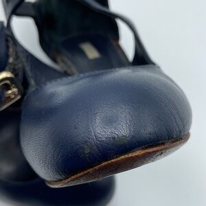 Uterque High Heels, Color- Blue, Size - EU39 US 8 .left shoe, front has scratched, clean and good condition.heels height 3.75”