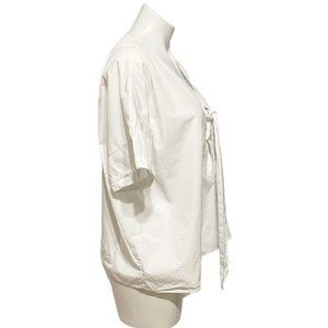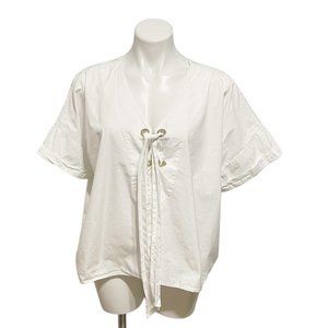 Uterque Made in Spain Medium White Lace Up V Neck Short Sleeve Lagonlook Top