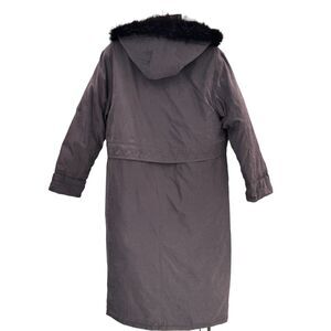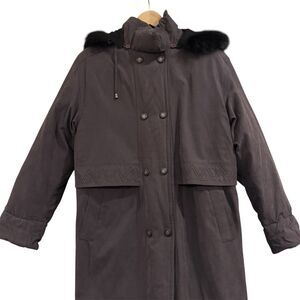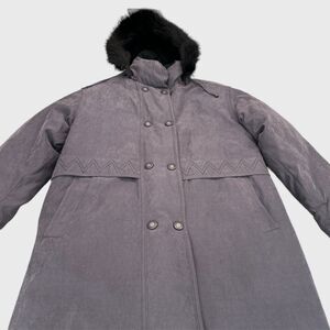 This long Parka is perfect for cold winter days and nights. It has a detachable faux fur trimmed hood. Cool stitching detail on the front and back make it truly fashionable. The warm down lining will keep you toasty all day without the oversized puffer jacket look. This coat is light weight and great for everyday use.