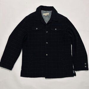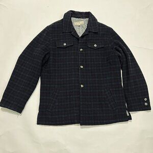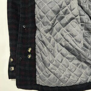 Utex Wool Blend Shirt Jacket Mens XL Burgundy Gray Plaid Quilted Lining Shacket