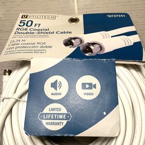 Utilitech RG6 Coaxial Double Shield Cable 50ft F-type New