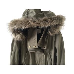 Utility Anorak Loft Olive Jacket with Faux Fur Trimmed Hood Size S