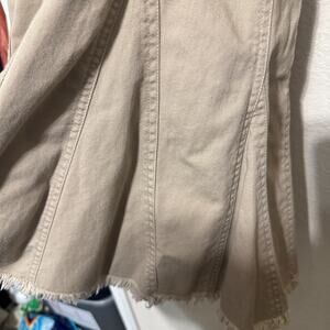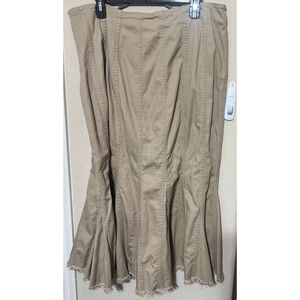 Utility Beige Denim Skirt Midi Vintage Y2K sz 18 fringe hem flare