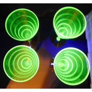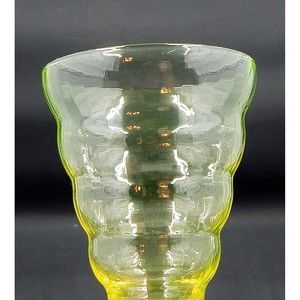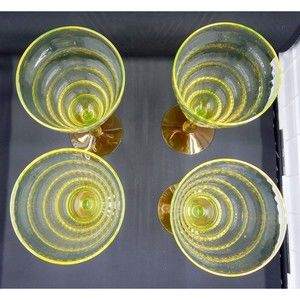 Utility Glass Works Cambodia Ware Vaseline Amber Foot Wine Water Goblet Pair 4