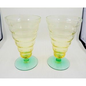 Utility Glass Works Cambodia Ware Vaseline Green Foot Ice Tea Water Goblet Set 4