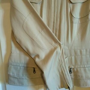 Details in photos. Material: 55%silk 45% cotton Measurement: Center back (neck) to hem 21"