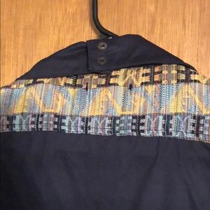 New, tags attached! Navy with Aztec type print around the neck/upper back area Several pockets and adjustments