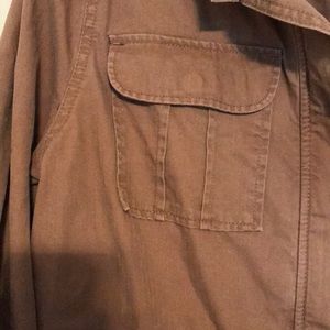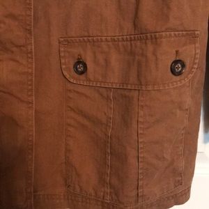Merona Jacket from Target. Perfect for fall. High quality heavy material. Pockets, zipper, and button detail. Medium brown, terra-cotta color.