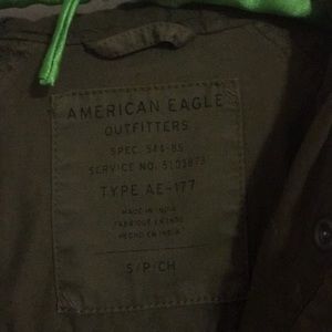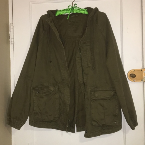 Oversized green utility jacket with hood and pockets!