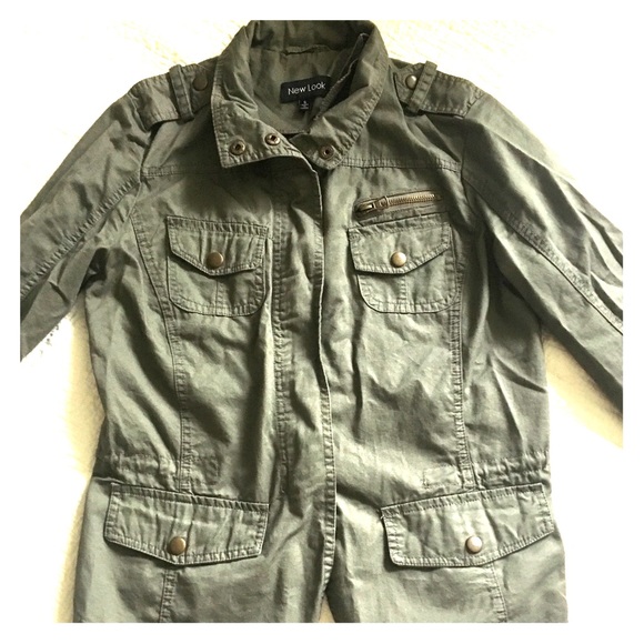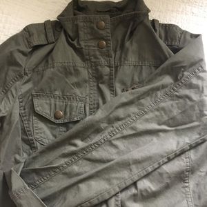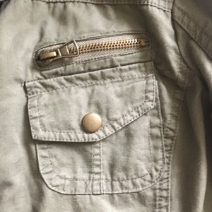 Lightweight military style jacket, worn just a few times. Zip and snap front. A neutral color and a timeless style 🌷