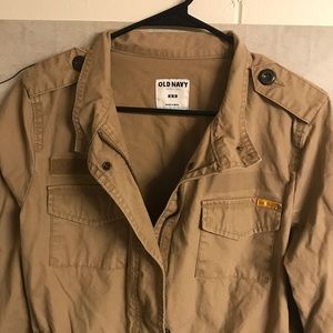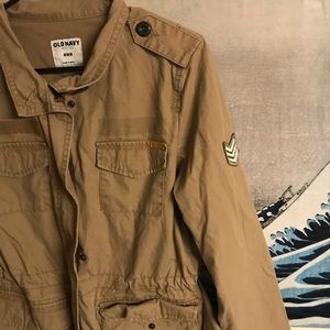 Old Navy khaki military / utility jacket. Drawstring waist cincher detailing. In great condition and super comfortable. Cool vintage look. Feel free to ask any questions or make an offer!