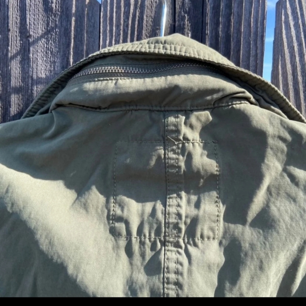 Mossimo green utility jacket. Great condition, waist drawstring, hidden hood and rool up sleeves. Size medium