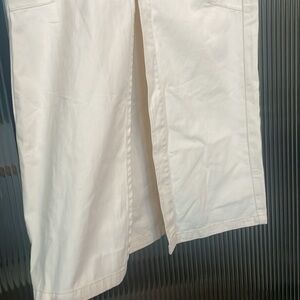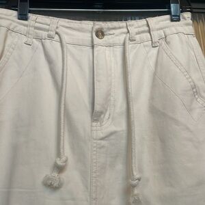 Khaki cotton maxi skirt with pockets, front slit, zip fly & drawstring waist. Utilitarian vibe. Soft. Great transition piece between seasons. By together.