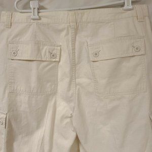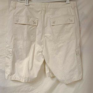 Brand & Description Utility Mens 40 Ivory Cream Flat Front 6 Pockets Knee Length Cargo Shorts 11" Inseam Work