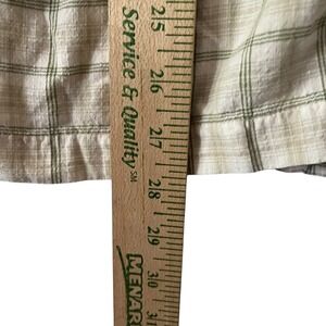 Keywords: Utility, mens shirt, medium, plaid, button up, short sleeve, cotton shirt, casual shirt, beige, green, vintage, retro, summer shirt, relaxed fit