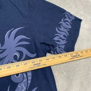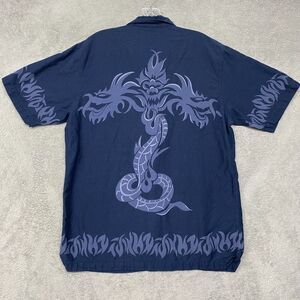 Utility Shirt Mens Medium Blue Dragon Camp Button Up Cotton Short Sleeve Casual